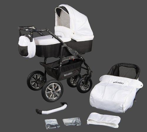 jetzt aveilable 2 in 1 Kombikinderwagen Komplettset BAVARIO - inkl. Kinderwagen und Sportwagen Aufsatz -Luft Bereifung zum aufpumpen - Weis-Schwarz mit günstigen Preisen.
